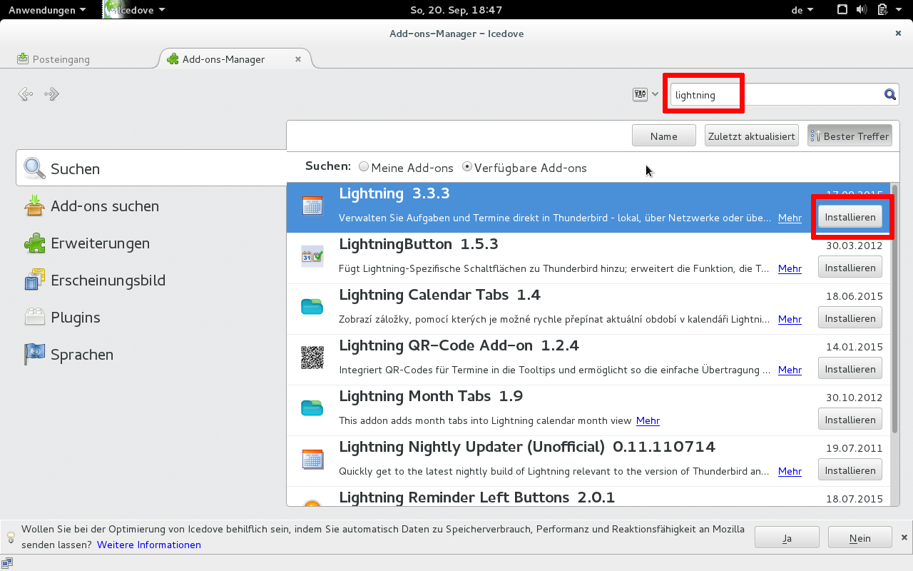 | 21:37, 20. Sep. 2015 | Thundereinstellungen.png (Datei) | 173 KB | Admin | 1 | ||
